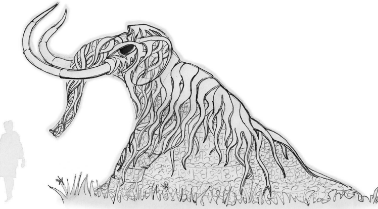 The artist felt it was important to differentiate the style of sculpture with existing public art in the area. The general concept will be a giant mammoth rising up out of the ground which ties in with the preferred Ice Age theme and local geology in an original way. The proposed location is the bottom end of Channels Park as shown in the planning documents.
