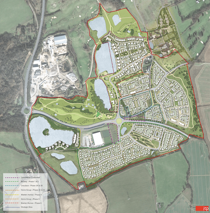 The Channels development was granted planning permission for 750 homes in 2012 and since then has been built in a number of phases by different developers. The image below shows the overall site management plan which includes each phase of the Channels development: